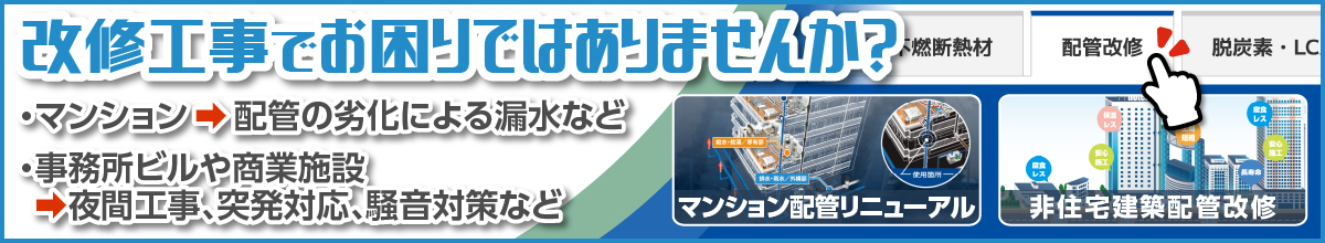 冷媒配管が区画貫通する箇所へフィブロック(スリーブ・スティック・カバー材)を設置するだけで、パテ不要・鋼製スリーブレスを実現。