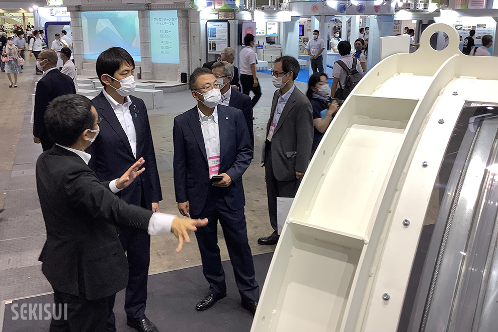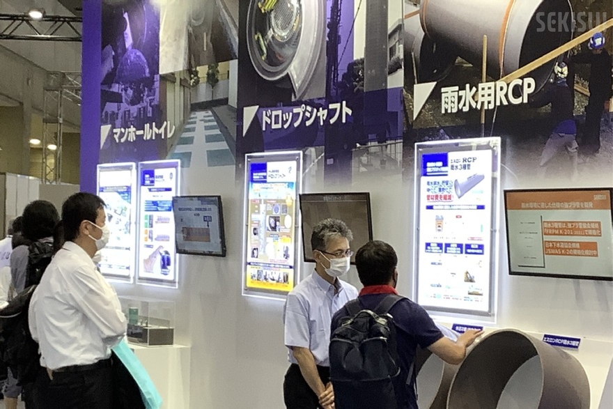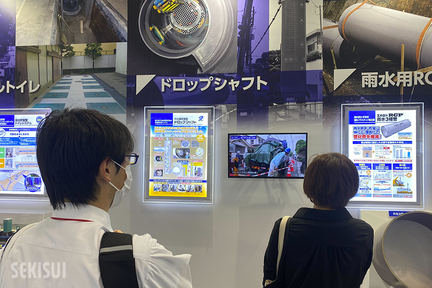 下水道をとりまく環境は、<建設・整備促進>の時代から大きく変容し、将来に向けたさまざまな課題を抱えています。まさに今、危機的状況ともいえる既存管路の老朽化や多発する自然災害への対策。下水道事業者様が抱える様々な課題とその解決に向けた積水化学の「応える技術」を一堂に展示しました。
