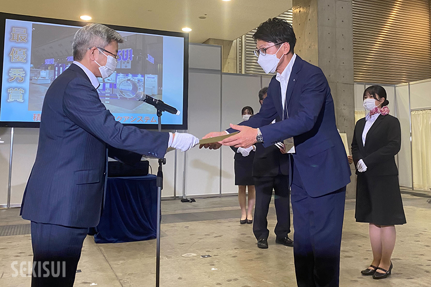 当社ブースの出展内容や地域貢献の取り組みなどが評価され、また、展示レイアウトでは空気の流れを作り、換気がスムーズに行われるように配慮していた点などについても来場いただくお客様、そして社員・スタッフにも安心・安全な展示を大前提とする当社の意志が具現化されていたとして、『最優秀賞』をいただくことができました。
