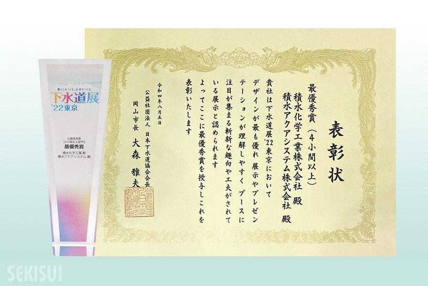 「下水道展’22東京」にて出展者表彰「最優秀賞」を受賞。WEB下水道展も開催中です。