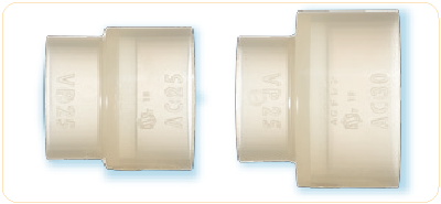 ACドレンパイプ・継手は呼び径20~65までのラインアップ。立て管用継手の品揃え拡充により、空調立て管も保温レスを実現。