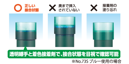 継手が透明なので接合状態を目視で確認可能。施工管理が容易です。