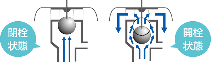 内部は空気弁と同じ構造になっているので、エアーハンマーや負圧発生によるパイプラインの破損を緩和します。