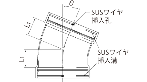離脱防止機能を有する曲管部は、FTR-N曲管+SUSワイヤ・RCP(離脱防止ゴム付)から 構成されます。