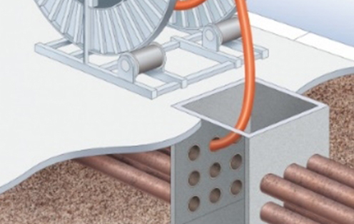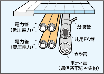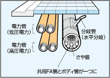 幹線ケーブルを一管一条で収容します。※SUΦ30×5条