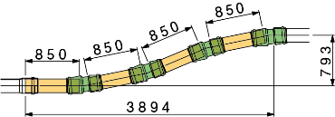 一定の曲率、長さ(1m)の製品を組み合わせにより施工線形にあわせるため、事前の配管検討が必要