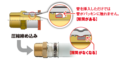 管を挿入しただけでは、止水しない構造となっているため、継手圧縮忘れは必ず水圧試験で発見できます。