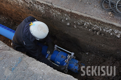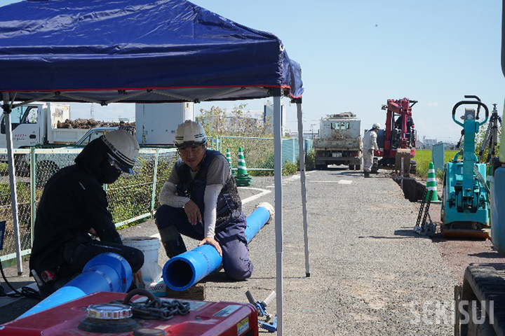 実は、この方法は積水さんの提案で初めて試したんです。ケースによりますが、現場条件によっては短時間での施工が必要だったり、水が出て溝内での接合が難しかったりする場合もありますから、そういった場面では特に有効だと思います。